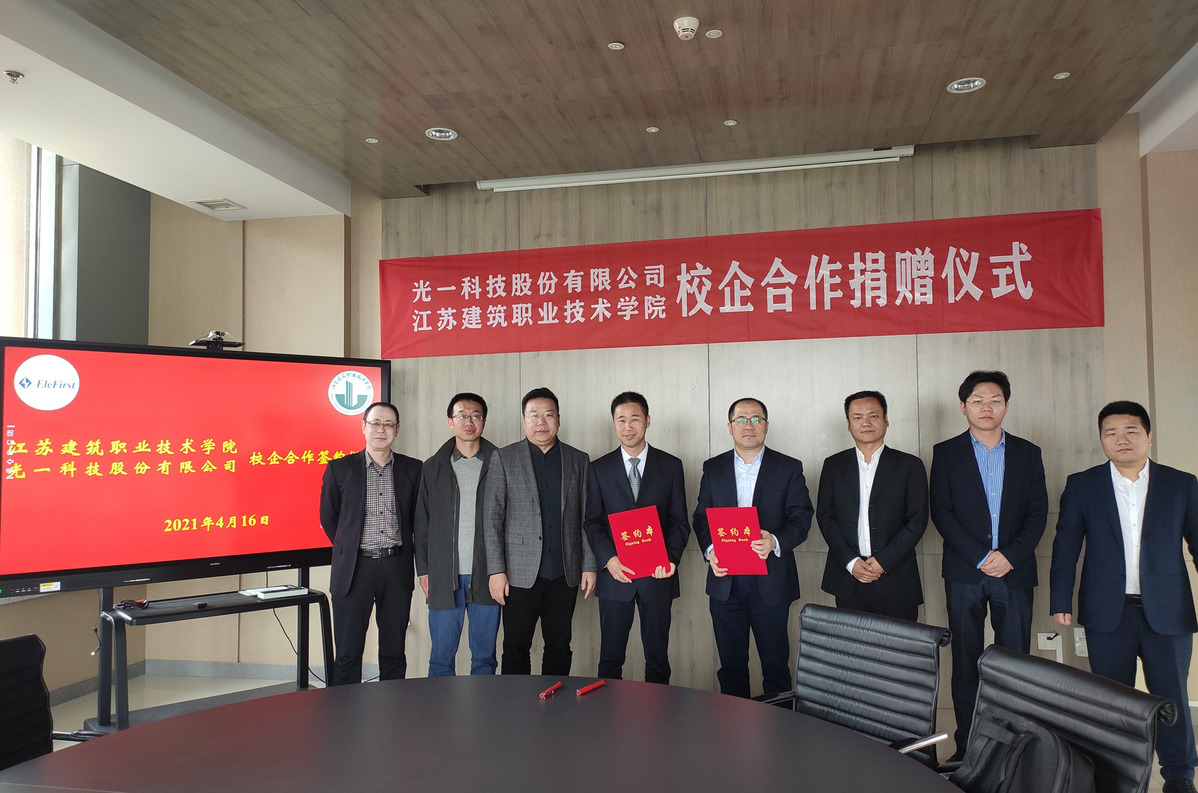 随后,校企双方签署了战略合作协议,刘海波为光一科技颁发设备捐赠证书,并合影留念。