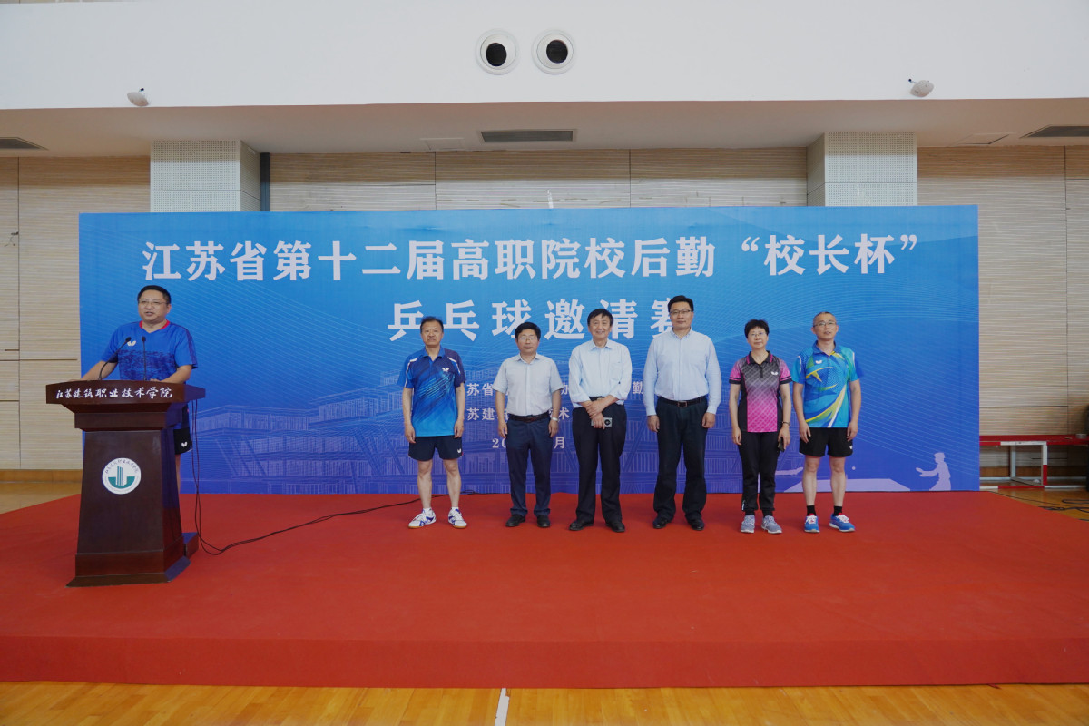 6月5日下午,由江苏省高校后勤协会高职分会主办、我校承办的江苏省第十二届高职院校后勤“校长杯”乒乓球邀请赛在学校体育馆举行。我校院长沈士德教授,省高校后勤协会副会长、秘书长黄在宇,省教育厅发展规划处副处长陈忠斌,我校副院长蒋兆峰以及来自省内16所高职院校的50余名领导参加开幕式。开幕式由蒋兆峰主持。