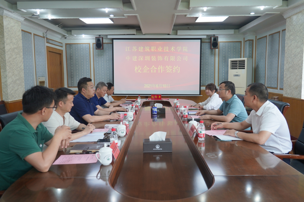 6月10日上午,我校与中建深圳装饰有限公司校企合作签约仪式在第一会议室举行。副院长刘海波,中建深圳装饰有限公司华东公司执行总经理、党总支副书记李皓,江苏分公司总经理刘计红,建筑建造学院、建筑装饰学院、智能制造学院、校企合作处相关负责人参加仪式。