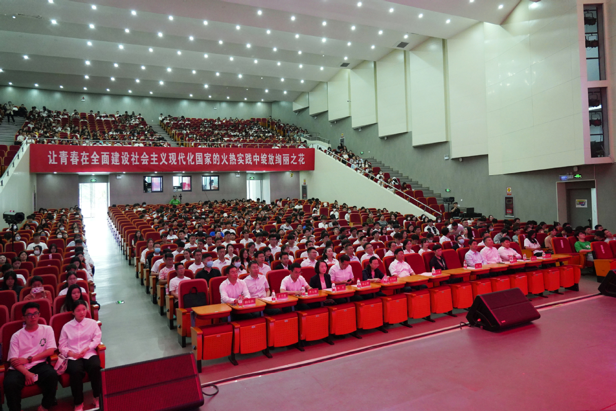 为深入开展学习贯彻习近平新时代中国特色社会主义思想主题教育,同时进一步推动学校共青团工作,在学生中表彰先进、树立典型,5月18日下午,我校在会堂隆重举行2023年春季优秀学生表彰大会。校长沈士德、党委副书记梁惠、徐州市鼓楼区九里街道九里新苑社区书记魏传龙、各相关职能部门负责人、二级学院党总支副书记和分团委书记出席大会,教师代表及优秀学生代表近千人参加会议。