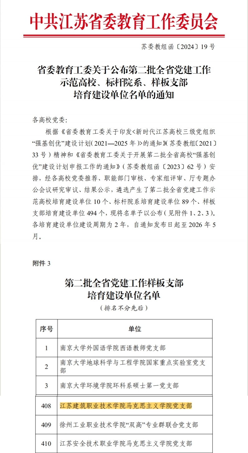 近日,省委教育工委公布第二批全省党建工作样板支部培育建设单位名单,我校马克思主义学院党支部入选第二批全省党建工作样板支部培育建设单位。