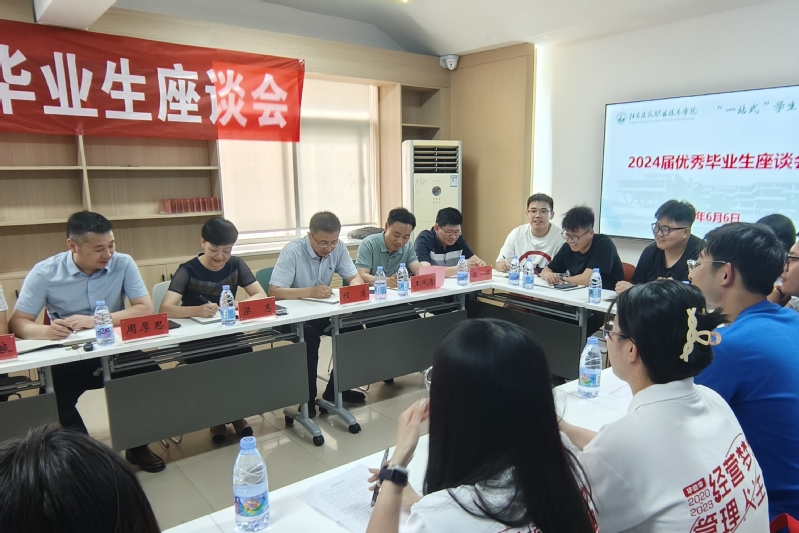 6月6日下午,学校在“一站式”学生社区会议室召开2024届优秀毕业生代表座谈会。校党委副书记梁惠,党委宣传部、教务处、学工处、后勤、团委等部门负责人及18名2024届优秀毕业生代表参加座谈会。座谈会由学工处处长周厚思主持。